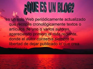 Este documento describe cómo crear un blog en 3 pasos fáciles. Primero, regístrate en Google Blogger o WordPress, que son servicios gratuitos. Luego, elige un nombre y diseño para tu blog. Finalmente, comienza a publicar tus artículos y actualízalo regularmente. Los blogs sirven para compartir ideas y generar contenido de manera periódica en la web.