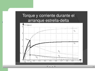 El documento describe los diferentes tipos de motores eléctricos, incluyendo sus principios de funcionamiento y ventajas. Explica que los motores de corriente alterna como los asíncronos son los más comunes, funcionando a velocidad constante. También clasifica los motores de jaula de ardilla según su par de arranque, corriente y regulación de velocidad.