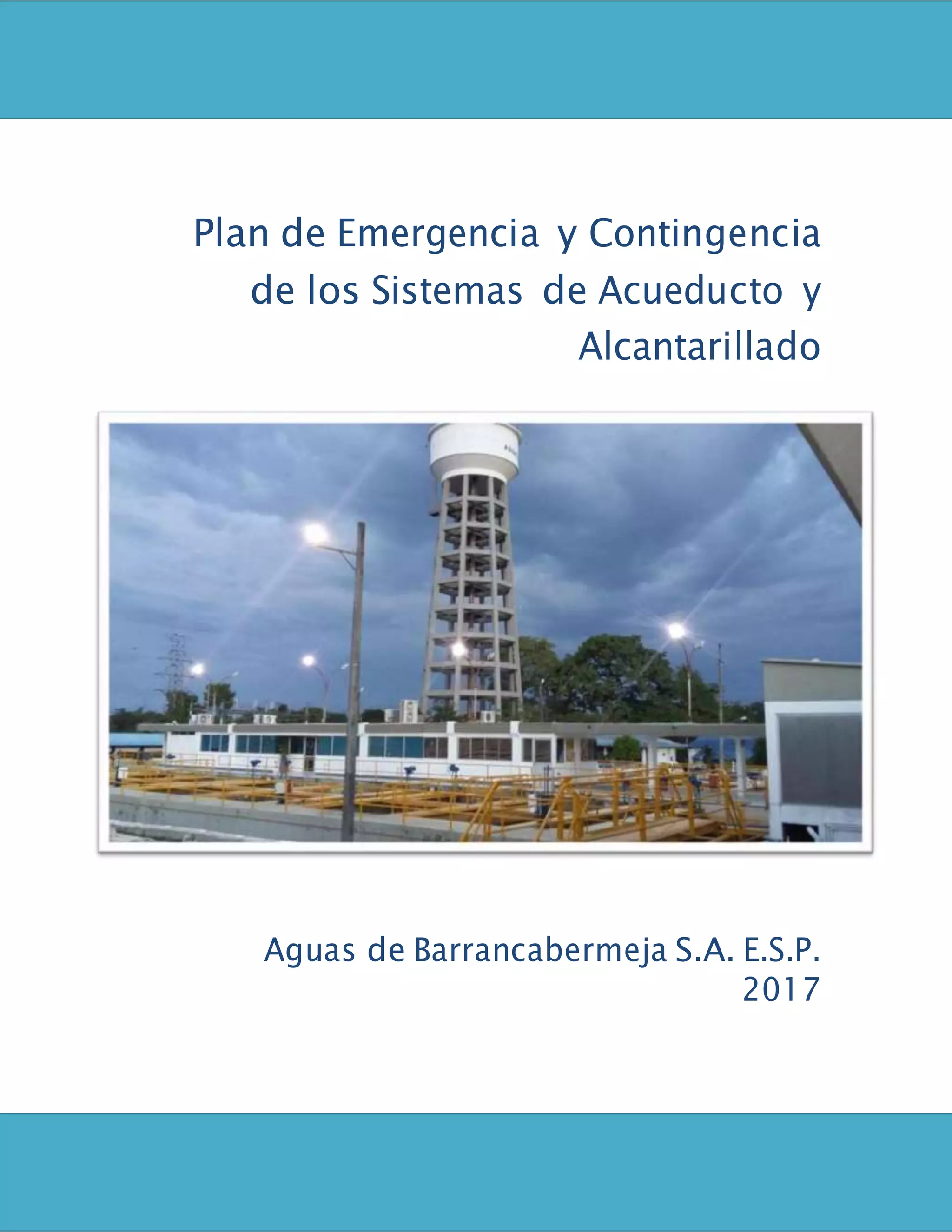 Este documento presenta el Plan de Contingencia 2017 de Aguas de Barrancabermeja S.A. E.S.P. El plan tiene como objetivo fortalecer la capacidad de respuesta de los sistemas de acueducto y alcantarillado ante emergencias como sequías, inundaciones y cortes de energía, de acuerdo con la normatividad colombiana. Describe los sistemas de acueducto y alcantarillado, identifica amenazas, evalúa riesgos, establece acciones de respuesta y comunicación, y define responsabil