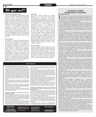 El documento habla sobre un conflicto en la Universidad Nacional San Cristóbal de Huamanga (UNSCH) donde los estudiantes acordaron continuar con medidas de lucha contra el rector. Se nombrará una comisión presidida por el rector de otra universidad para proponer soluciones al conflicto. También cubre otros temas relacionados a la UNSCH como su historia y la pérdida de credibilidad de las autoridades ante los estudiantes.