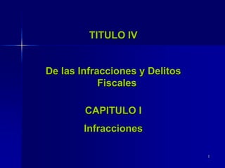 Este documento trata sobre infracciones y delitos fiscales según el Código Fiscal de la Federación de México. Se define infracción fiscal como un hecho u omisión descrito y sancionado por la ley. Se clasifican las infracciones y se describen diferentes tipos de delitos fiscales como por querella, declaratoria de perjuicios o denuncia de hechos. También se explican procedimientos administrativos como el recurso de revocación y las formas de notificación fiscal.