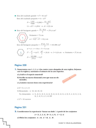 Este documento presenta varios problemas de probabilidad que involucran el lanzamiento de dados, monedas y bolas en urnas. Los problemas incluyen calcular probabilidades simples y condicionales, así como determinar la independencia de eventos. Se proporcionan tablas y diagramas de árbol para ayudar a visualizar y resolver los problemas planteados.
