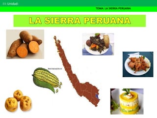 La Sierra Peruana se encuentra en la región montañosa de los Andes. Produce papas, maíz, quinua y cria llamas, alpacas y ovejas.