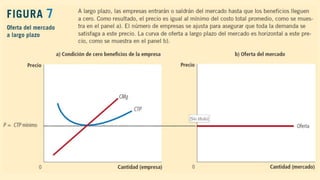 2) A largo plazo, la libre entrada y salida de empresas hace que el precio sea igual al costo total promedio mínimo, dando como resultado cero beneficios.