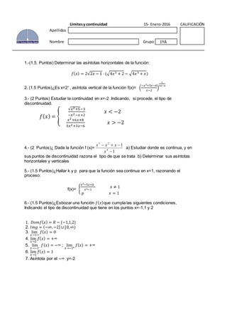 Límitesy continuidad 15- Enero-2016 CALIFICACIÓN