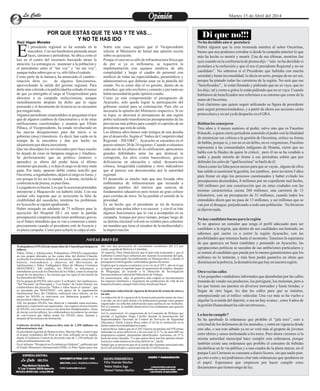 El documento presenta varias noticias locales de Ayacucho, Perú. Incluye una historia sobre una bomba lacrimógena lanzada cerca de una escuela inicial, una nueva ordenanza municipal que prohíbe el "jalatoro" (molestar a toros), y comentarios sobre los cambios en los funcionarios regionales anunciados por el presidente regional. También cubre otros temas como talleres para niños trabajadores y la inversión del gobierno en infraestructura vial en Huancavelica.