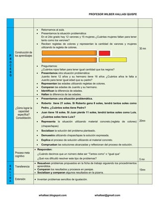 Este documento presenta una lección sobre la resolución de problemas de igualación para estudiantes de segundo grado. La lección utiliza materiales concretos como regletas de colores y fichas para que los estudiantes representen y resuelvan problemas matemáticos. La lección guía a los estudiantes paso a paso en la comprensión y aplicación de la igualación a través de ejemplos, práctica guiada y ejercicios de transferencia.