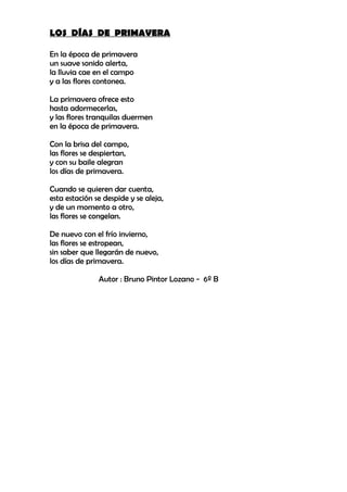 La primavera trae lluvia suave que arrulla a las flores y las hace dormir tranquilamente. Cuando la brisa del campo las despierta, bailan alegremente para alegrar los días de primavera. Sin embargo, la estación se va rápidamente y de repente llega el invierno frío, marchitando a las flores, aunque volverán a renacer en la próxima primavera.