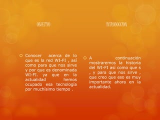 La red Wi-Fi surgió para establecer una conexión inalámbrica compatible entre dispositivos. En 1999, varias empresas crearon la WECA para fomentar esta tecnología y asegurar la interoperabilidad, adoptando en 2000 la marca Wi-Fi para equipos que cumplían el estándar 802.11b. Hoy en día, Wi-Fi permite a usuarios conectarse a Internet desde zonas cercanas a puntos de acceso, usando radiofrecuencia en la banda de 2,4 GHz de forma similar a las microondas.
