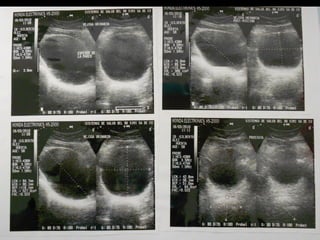 La hiperplasia prostática benigna es un crecimiento anormal de la próstata no canceroso que produce obstrucción del flujo urinario y síntomas como vacilación y urgencia. Su tratamiento incluye medicamentos como alfabloqueadores y bloqueadores de la 5-alfa reductasa, o cirugía como la resección transuretral de próstata.