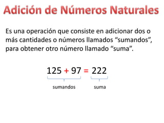 Es una operaciónque consiste en adicionar dos o