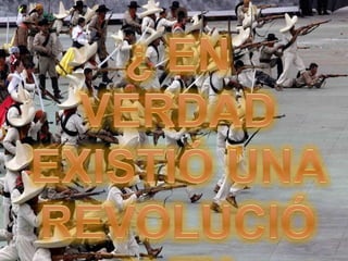 La Revolución Mexicana fue el resultado de múltiples factores económicos, políticos y sociales que generaron descontento en la población, como el latifundismo, el dominio de capitales extranjeros, la falta de libertades políticas y la división de clases. Este descontento se manifestó a través de huelgas y la oposición de partidos políticos. Finalmente, el Plan de San Luis de Francisco I. Madero inició el levantamiento armado en 1910 que derrocó a Porfirio Díaz y dio inicio al periodo