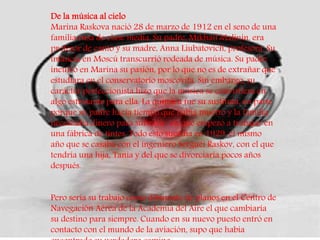 El documento describe la creación de tres regimientos de combate aéreo formados principalmente por mujeres en la Unión Soviética durante la Segunda Guerra Mundial. Marina Raskova, una piloto soviética condecorada, propuso esta idea a Stalin y organizó el entrenamiento de las voluntarias, dividiendo el Grupo de Vuelo Especial no. 122 en tres regimientos: el 586 de caza, el 587 de bombardeo y el 588 de bombardeo nocturno, conocido como las "Brujas de la Noche".