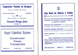 Este documento presenta el programa de las fiestas patronales de Almudévar en honor a la Virgen de la Corona. Incluye una bienvenida del alcalde resumiendo mejoras recientes en la villa como la ampliación del abastecimiento de agua y anunciando próximas obras de pavimentación y alcantarillado. También describe los eventos planeados como fútbol, carreras y fuegos artificiales, así como los actos religiosos en honor a la patrona durante los días 7 y 8. El alcalde desea a todos felices fiest
