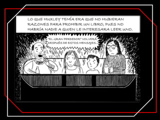 Este documento resume la vida y obra de George Orwell, en particular su novela distópica más famosa "1984". Brevemente describe que Orwell fue un destacado ensayista inglés del siglo XX conocido por sus novelas críticas con el totalitarismo "Rebelión en la granja" y "1984". Explica que "1984" presenta una extrapolación de prácticas totalitarias de la Unión Soviética y la Alemania Nazi y describe elementos clave de la novela como el Gran Hermano, el Partido, el doblepensar y la neolengua.