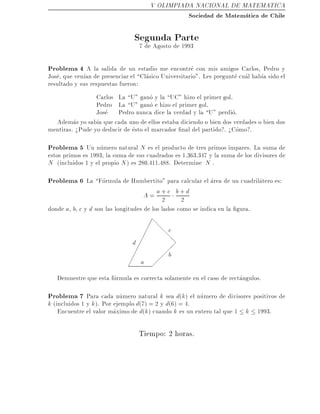 1. Se presentan cuatro problemas matemáticos relacionados con lógica, números primos, áreas de cuadriláteros y divisores.