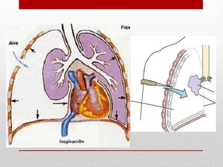 Este documento resume las lesiones torácicas, su anatomía, fisiología, diagnóstico y tratamiento. Las lesiones torácicas representan el 20-25% de las muertes por trauma. Se clasifican según su mecanismo, severidad y localización. Los traumas pueden causar neumotórax, hemotórax u otras lesiones pulmonares o vasculares. El diagnóstico incluye examen físico, radiografía de tórax y TAC. Los tratamientos dependen del tipo y gravedad de la lesión y