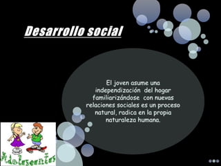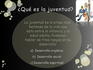 El desarrollo orgánico y espiritual de los jóvenes ocurre de forma paulatina, donde el cuerpo cambia para transformarse en un adulto y cada joven forma su propia personalidad a través de un proceso.