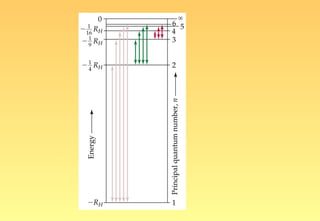 El documento resume la evolución del modelo atómico, desde los primeros modelos de Platón, Aristóteles y Demócrito, hasta el modelo actual basado en la mecánica cuántica. Explica las partículas subatómicas como el electrón y el protón, y cómo experimentos como el de Rutherford llevaron al modelo nuclear del átomo. También describe el comportamiento ondulatorio del electrón, el principio de incertidumbre de Heisenberg, y cómo la ecuación de Schrödinger explica los números cuánticos y los