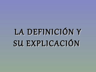 Este documento presenta tres ejemplos de definiciones y sus explicaciones. El primer ejemplo define computadora y plantea preguntas para explicar términos como máquina electrónica y procesar datos a gran velocidad. El segundo ejemplo explica el origen de la palabra abogado y sus dos significados principales como profesional del derecho o mediador en conflictos legales. El tercer ejemplo explica la definición de gato como animal mamífero, felino y doméstico, describiendo características como su desarrollo y clasificación.