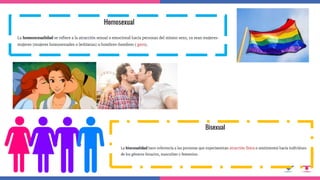 La sexualidad es un conjunto de condiciones anatómicas, fisiológicas y psicológicas que caracterizan a cada sexo y abarca aspectos emocionales y conductuales desde el nacimiento hasta la muerte. Se desarrolla a través de etapas, siendo la adolescencia crucial para explorar y establecer la identidad sexual. La OMS define la sexualidad humana como una experiencia que incluye relaciones sexuales, intimidad, y placer, diferenciándose del sexo biológico y del género.