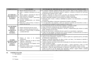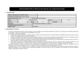 El documento describe el enfoque curricular del área de comunicación para el primer año de secundaria, destacando la necesidad de consolidar los logros del ciclo anterior y preparar a los estudiantes para el siguiente. Los estudiantes deben desarrollar habilidades de escucha, lectura y producción de textos, así como fortalecer su formación literaria a través de la interacción y el uso de TICs, mientras se abordan enfoques transversales como derechos humanos, inclusión y género. Se establecen competencias y estándares específicos para el aprendizaje y evaluación en el contexto comunicativo.