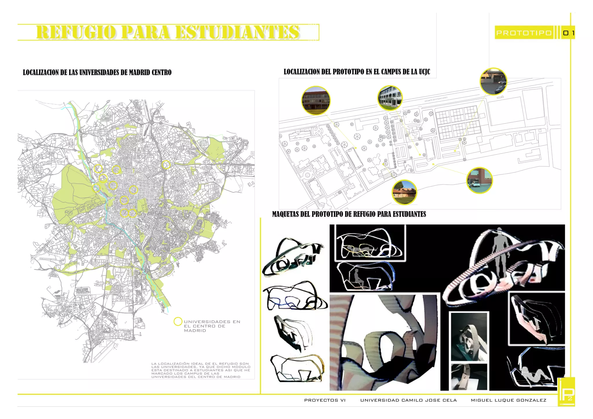 Este prototipo muestra los campus de las universidades en el centro de Madrid. Se han marcado los accesos a las universidades y se ha designado este módulo para estudiantes. Las barreras de control se han colocado en los accesos.