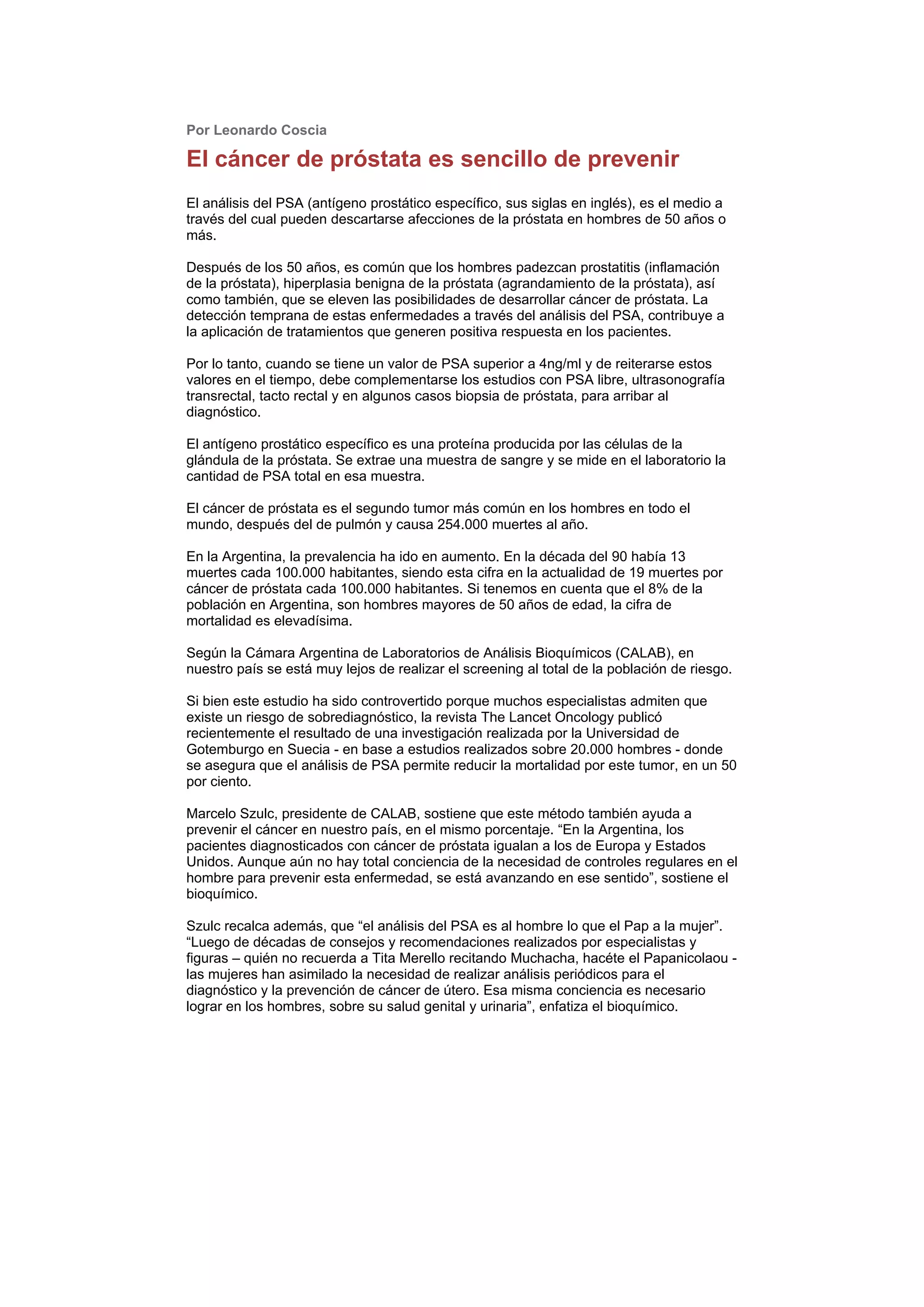 El documento discute la importancia de las pruebas de PSA para la detección temprana y prevención del cáncer de próstata. Explica que los hombres mayores de 50 años deben realizarse pruebas de PSA regularmente ya que después de esa edad aumenta el riesgo de padecer prostatitis, hiperplasia benigna de próstata o cáncer de próstata. La detección temprana a través de las pruebas de PSA permite tratamientos efectivos y reduce la mortalidad por cáncer de próstata en un 50%.