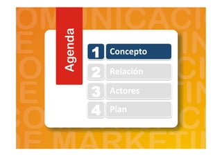 El documento presenta los conceptos clave de las comunicaciones integradas de marketing (CIM). Explica que las CIM involucran la planificación estratégica de todos los mensajes de una organización a través de múltiples canales para lograr objetivos. También describe los diferentes actores y elementos que componen las CIM, como la publicidad, promoción de ventas, relaciones públicas, entre otros.
