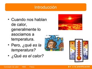 La temperatura describe el grado de calor de los cuerpos y se transfiere calor de un objeto a otro debido a diferencias de temperatura. James Joule estableció que el calor es energía mecánica a través de experimentos donde la energía mecánica de pesos cayendo hacía girar paletas en agua y aumentaba su temperatura. Determinó que 1 caloría equivale a 4.186 Julios de energía mecánica.