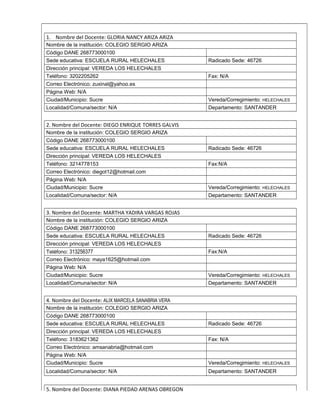 Este documento presenta un formulario para un proyecto de aula con TIC desarrollado por cinco docentes en la Escuela Rural Helechales en Santander, Colombia. El proyecto se titula "Mi Mundo Mágico de la Lectura" y busca motivar a los estudiantes a mejorar sus habilidades comunicativas y de lectoescritura a través del uso de juegos interactivos y aplicaciones en TIC. El proyecto se ha enfocado en áreas como lengua castellana y competencias ciudadanas para estudiantes de grados 10 y 11.