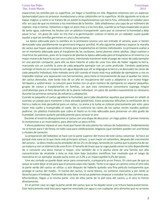 1) El documento describe el cactus San Pedro, el cual ha sido utilizado por nativos sudamericanos en ceremonias religiosas y rituales de sanación debido a sus propiedades alucinógenas. 2) Contiene mezcalina, la cual puede ser ingerida al secar y pulverizar la piel del cactus o cocinarla durante 7 horas para crear un brebaje. 3) Tradicionalmente, chamanes guiaban sesiones con esta planta sagrada para viajes espirituales o sanación, aunque se requiere precaución al usarla fuera