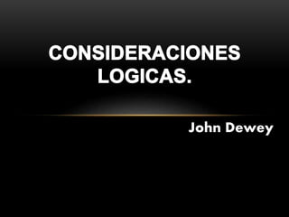 El documento describe el proceso de pensamiento reflexivo según John Dewey. Explica que el pensamiento real difiere de la forma lógica y depende de los hábitos de un individuo. También describe las cinco fases del pensamiento reflexivo: sugerencias, intelectualización, idea conductora, razonamiento y comprobación de hipótesis. Además, señala que los juicios son las unidades constitutivas del pensamiento y surgen de la duda y controversia.