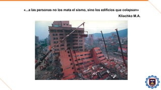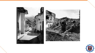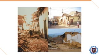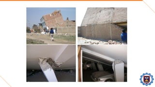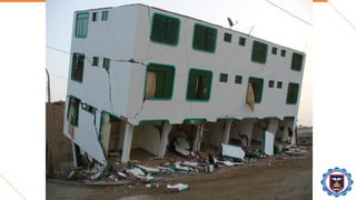 El documento trata sobre los daños estructurales causados por sismos en el Perú y el mundo. Explica las principales causas de falla en estructuras durante sismos como deficiencias en el diseño, construcción y materiales. Luego describe varios sismos importantes en el Perú y el mundo, los daños causados e importantes lecciones aprendidas sobre diseño sísmico resistente. Finalmente, propone mejoras a las normas de diseño sísmico para aumentar la resistencia de estructuras a futuros sismos.