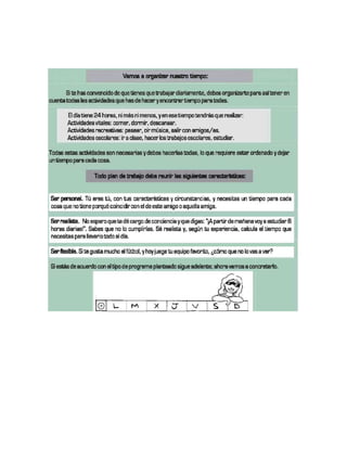 Este documento presenta el plan de acción tutorial para el segundo curso de ESO en el IES Valentín Turiezo para el primer trimestre del curso escolar 2014-2015. Incluye las diferentes sesiones de tutoría programadas con sus objetivos, actividades y fechas. Las sesiones iniciales se centran en la acogida y organización del grupo, mientras que las posteriores tratan temas como técnicas de estudio, salud, autoevaluación y coordinación con las familias. El documento también proporciona materiales de apoyo para las sesiones como cuestionarios y