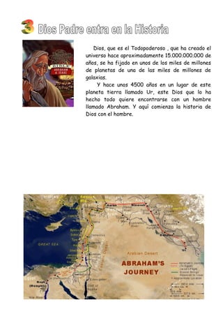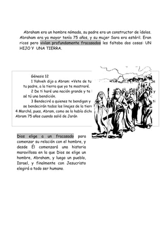 Dios elige a Abraham, un hombre fracasado de 75 años de edad en Ur de los Caldeos, y le promete hacerlo padre de una gran nación y darle la tierra de Canaán. Dios le muestra a Abraham las estrellas y le dice que su descendencia será tan numerosa. Este encuentro marca el comienzo de la relación especial entre Dios y su pueblo elegido de Israel, que culmina con la venida de Jesucristo y la salvación para toda la humanidad.