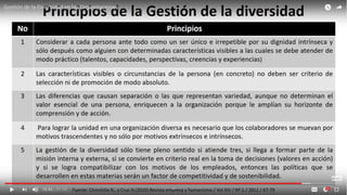 Este documento describe cómo las empresas pueden gestionar la diversidad para que sea un valor añadido mediante la creación de un entorno de sensibilización continua que potencie la diversidad como motor de innovación y satisfacción de los empleados, lo que depende de la visión de la dirección y la responsabilidad social empresarial.