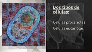 El documento describe las diferencias entre las células procariotas y eucariotas, destacando que las primeras carecen de núcleo y otros orgánulos, mientras que las segundas, que incluyen células animales y vegetales, poseen un núcleo y diversos orgánulos funcionales. Ambas tipos de células comparten características como citoplasma, membrana plasmática y ribosomas. Además, se menciona que las bacterias pertenecen al reino Moneras y pueden ser beneficiosas o perjudiciales.