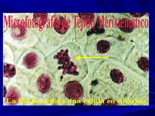 Este documento describe los principales órganos de las angiospermas. Explica que las células del embrión se diferencian temprano en tres tejidos: protodermis, procambio y meristema fundamental. Luego se enfoca en describir detalladamente la raíz, sus zonas (protección, meristemática, elongación, ramificación y transición), anatomía (epidermis, corteza, endodermis y estele) y crecimiento. Finalmente contrasta la disposición del xilema y floema en monocotiledóneas y dicotiledó