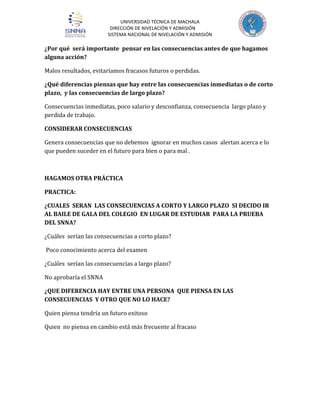 Este documento presenta una lección sobre procesos de expansión y contracción de ideas. Explica que la expansión de ideas implica considerar extremos, variables y consecuencias a corto y largo plazo. La contracción de ideas significa definir objetivos y reglas. Incluye ejemplos de cómo aplicar estos procesos al analizar las consecuencias de faltar al trabajo o decidir estudiar para un examen. Concluye que estas herramientas de pensamiento crítico pueden ayudar a las personas a lograr sus metas.
