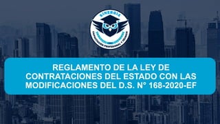El documento habla sobre la ejecución de obras públicas según la Ley de Contrataciones y su Reglamento. Explica aspectos como la organización de las entidades para las contrataciones, el plan anual de contrataciones, los impedimentos, la identificación y asignación de riesgos, y los requisitos para convocar un procedimiento de selección. También cubre temas como el contenido del expediente de contratación, los órganos a cargo del procedimiento de selección, los documentos del procedimiento, y los métodos y requisitos de contr