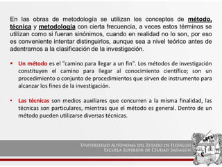 Este documento describe los diferentes criterios para clasificar investigaciones académicas. Explica que las investigaciones pueden clasificarse según su paradigma (cuantitativo o cualitativo), según su finalidad (fundamental, teórica o aplicada), o según su dimensión cronológica (histórica, descriptiva o experimental).