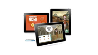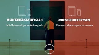 Este documento discute los retos actuales del arte y la tecnología en los museos. Explora las estrategias digitales del Museo Thyssen-Bornemisza como EducaThyssen, que incluye una página web participativa, publicaciones digitales, gamificación y talleres interactivos. El objetivo es facilitar el conocimiento y disfrute del arte, fomentar la participación y crear contenido accesible para todos los públicos utilizando tecnologías de forma innovadora.