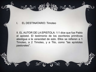 La segunda carta a Timoteo fue escrita por el apóstol Pablo desde Roma, donde se encontraba encarcelado, dirigida probablemente a Timoteo en Efeso. En la carta, Pablo insta a Timoteo a visitarlo en Roma y a continuar valientemente predicando el evangelio y luchando contra el error a pesar de la persecución, debido a la apostasía que se avecinaba. El propósito de la carta era exhortar a Timoteo a mantener su valor espiritual y redoblar sus esfuerzos misioneros.