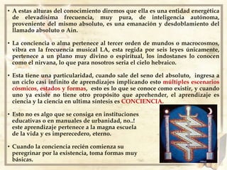 Este documento describe la existencia de los elementales, que son entidades energéticas muy puras que toman formas en los diferentes reinos de la naturaleza como parte de su aprendizaje eterno. Los elementales animan todo lo creado en la naturaleza a nivel atómico y molecular, y toman formas como hadas, duendes y otras criaturas en los reinos del fuego, aire, agua y tierra. Los elementales más avanzados pueden interactuar con los seres humanos y guiarlos en su propio aprendizaje.