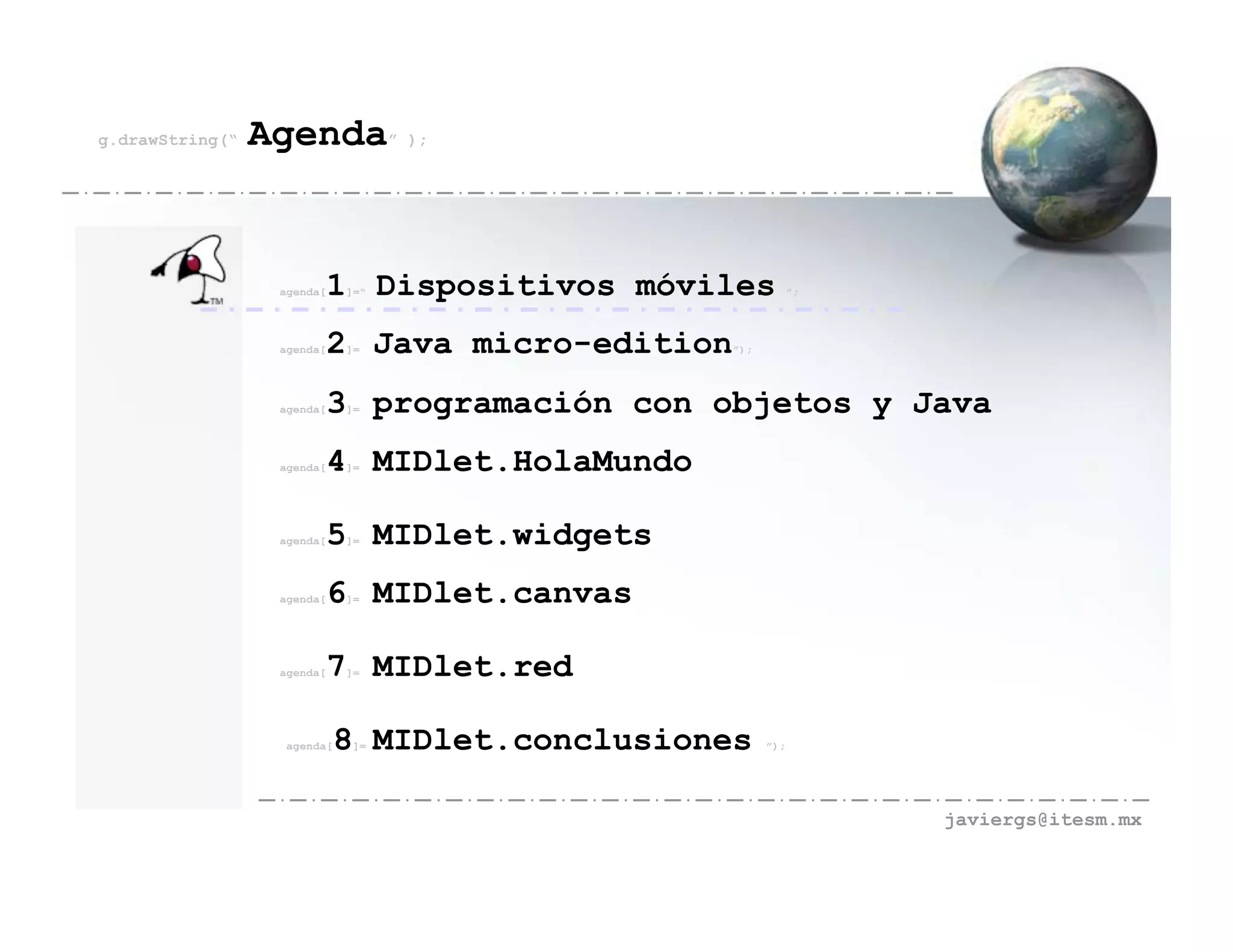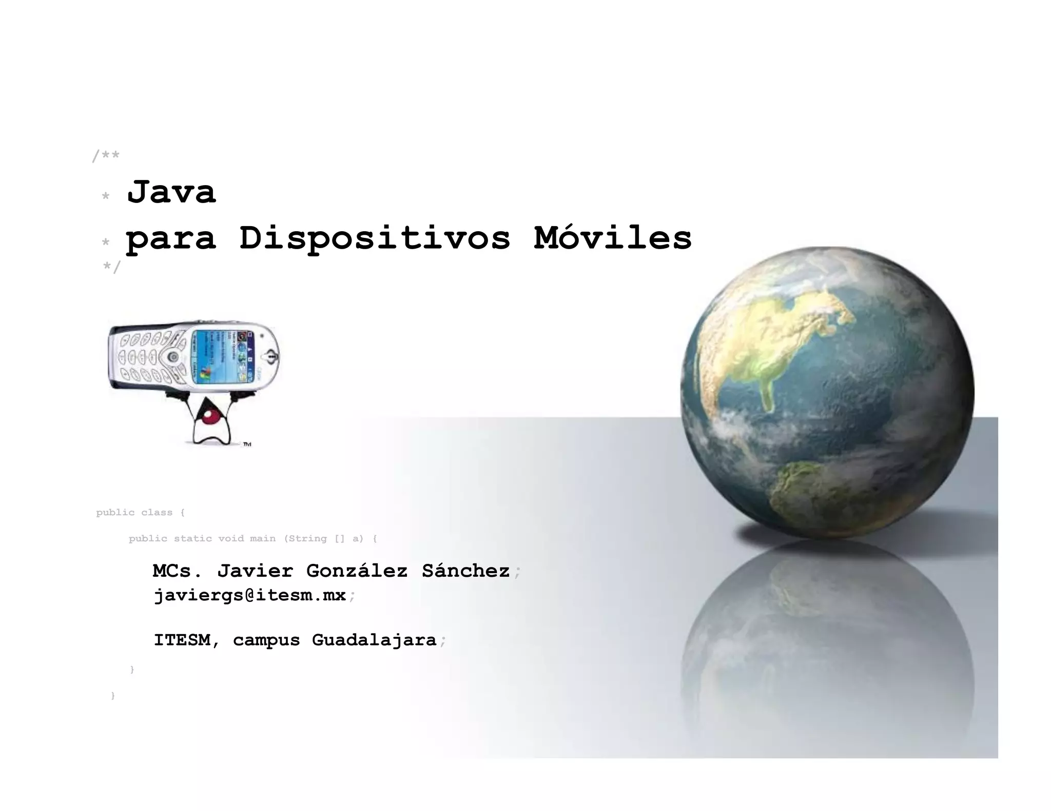El documento es una introducción a la programación en Java para dispositivos móviles, especialmente utilizando Java Micro Edition (J2ME). Se abordan aspectos como la configuración del entorno de desarrollo, la definición de midlets, clases y elementos de interfaz, así como conceptos de programación orientada a objetos. También se mencionan herramientas útiles y ejemplos de código para facilitar la comprensión de la creación de aplicaciones móviles.