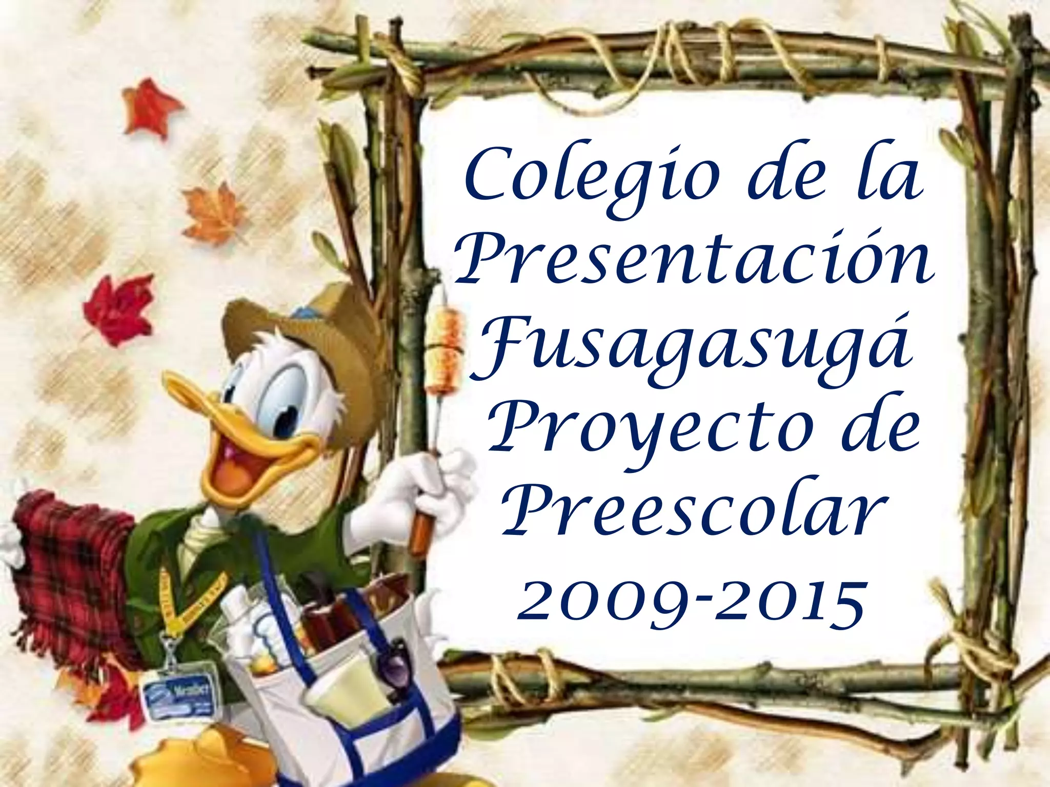 El documento describe el proyecto educativo de un colegio colombiano para el nivel preescolar durante el periodo 2009-2015. El objetivo principal es ofrecer una formación integral a los niños y niñas que desarrolle sus habilidades y competencias a través de actividades que motiven su aprendizaje y convivencia. Se enfatiza la importancia de estimular a los menores en las primeras etapas de la vida, cuando el cerebro es más plástico y receptivo para aprender. Una adecuada educación temprana traerá beneficios