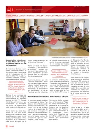 Este documento resume las principales declaraciones de Jorge Alarte, secretario general del Partido Socialista Valenciano. Alarte exigió al presidente de la Comunidad Valenciana, Francisco Camps, que no use la bandera valenciana para ocultar sus errores y que dé explicaciones sobre los casos de corrupción. También pidió al líder del Partido Popular, Mariano Rajoy, que presione a Camps para que dimita. Alarte anunció que los diputados socialistas realizarán más de 200 actos públicos para explicar su programa económico.