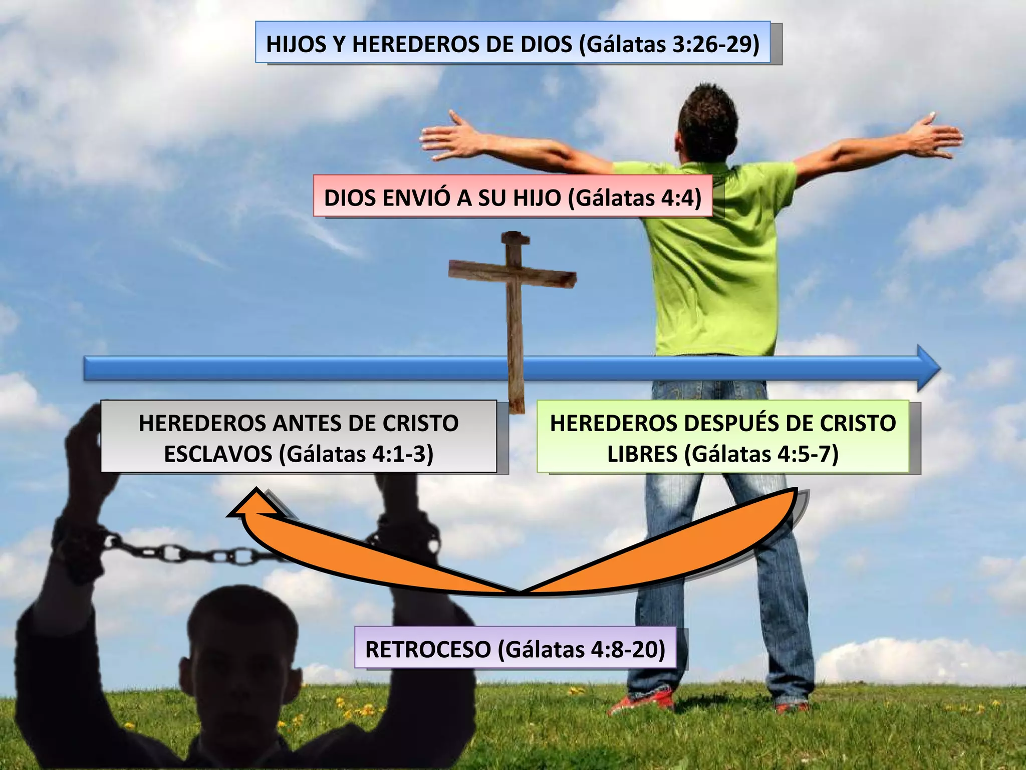 El documento resume un sermón sobre Gálatas 3:26-4:20. Explica que ahora somos hijos de Dios por la fe en Cristo, no por obedecer la ley. Antes de Cristo éramos esclavos bajo la ley, pero ahora somos libres gracias a que Dios envió a su Hijo para salvarnos. Advierte contra volver a someternos a la ley en lugar de vivir por la gracia de Dios.