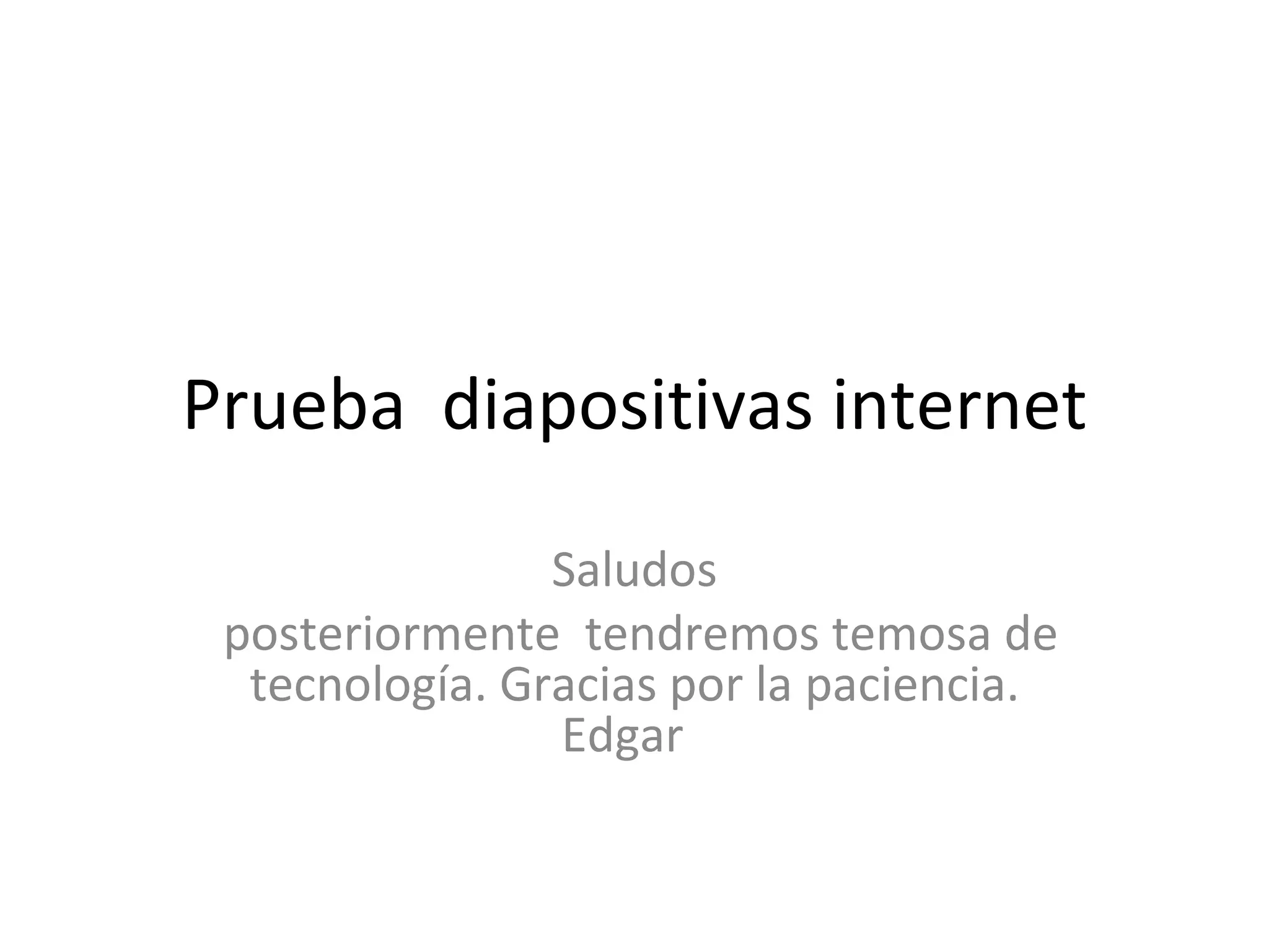 El documento habla brevemente sobre una prueba de diapositivas de internet y agradece la paciencia de los lectores antes de discutir temas tecnológicos posteriores.